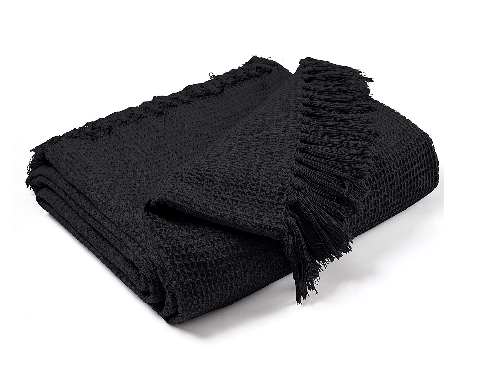 100% Cotton Honeycomb Woven Blanket Throw – Black