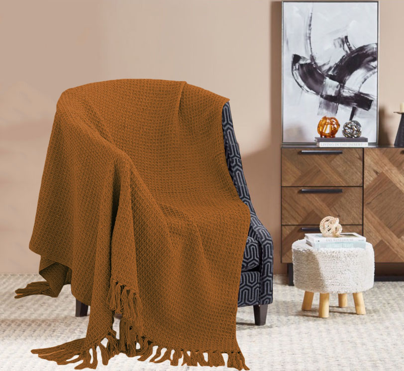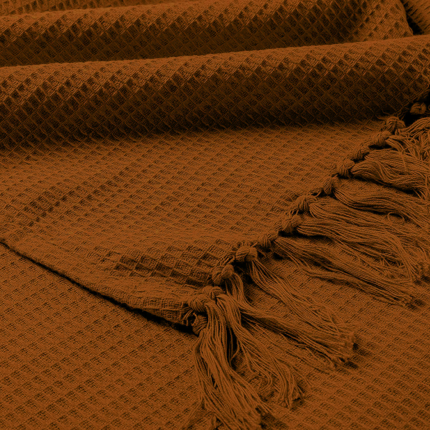 100% Cotton Honeycomb Woven Blanket Throw – Chocolate Brown