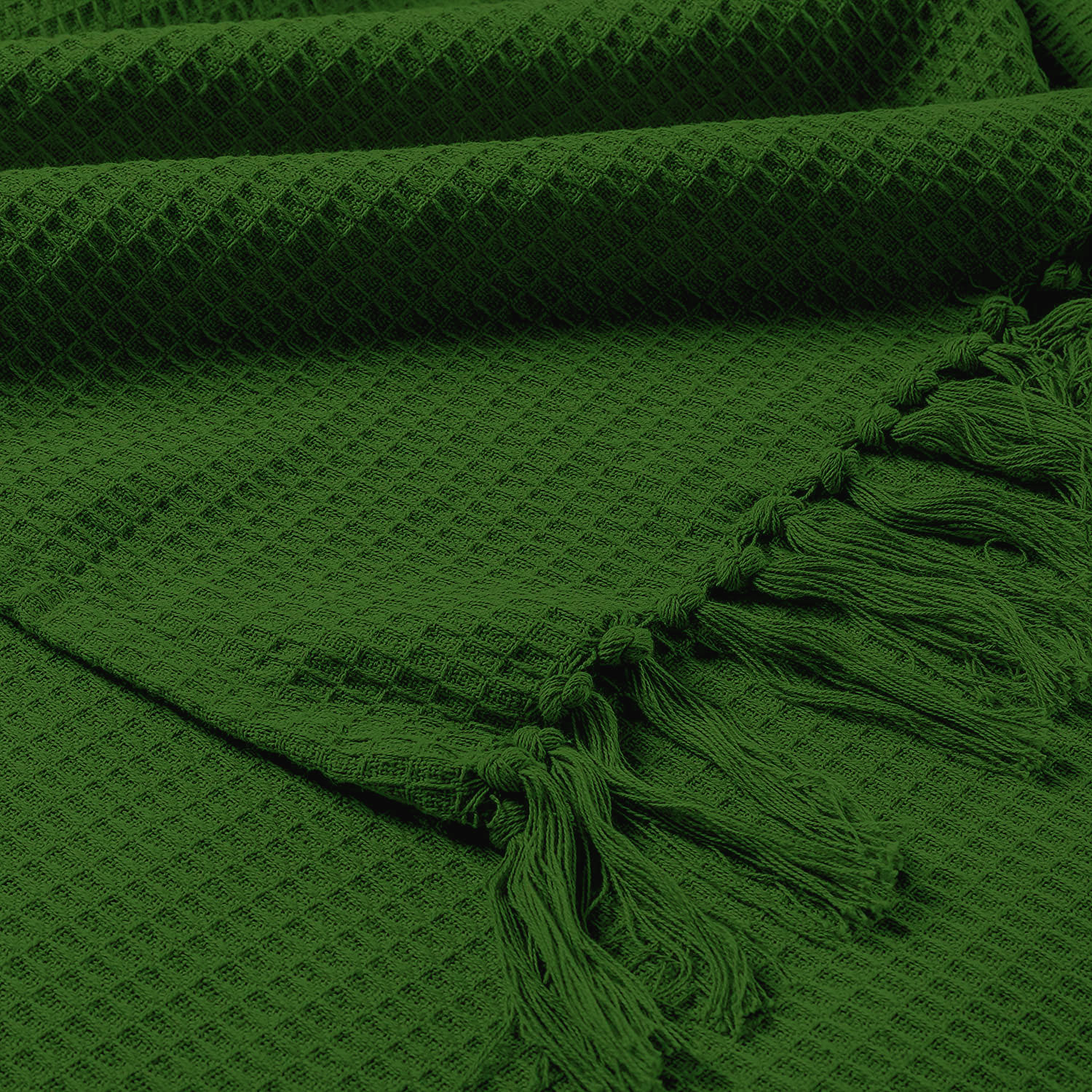 100% Cotton Honeycomb Woven Blanket Throw – Forest Green