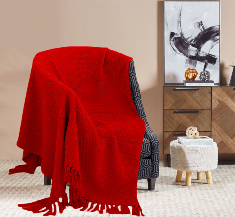 100% Cotton Honeycomb Woven Blanket Throw – Red