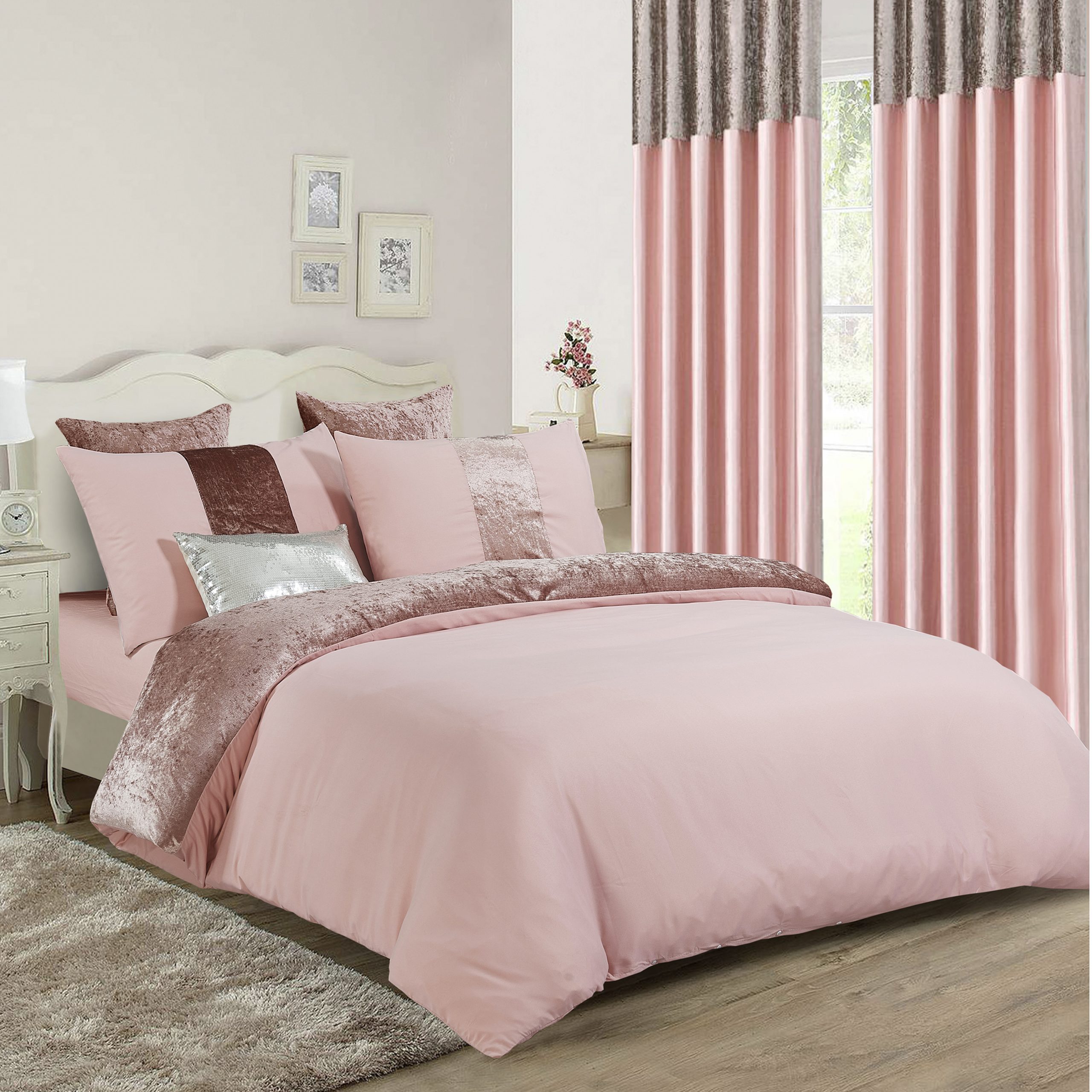 This luxurious crushed velvet panel duvet cover set would look ideal in any bedroom due to its crushed velvet band design and striking colors. This is a perfect way to give your room a fresh, modern look, with its delicate colors. This duvet set is made from soft-touch polyester, making it soft, comfortable, and durable. This easy-care bed linen will give your bedroom an instant sophisticated look and once washed it has great resistance to wrinkles, fading, and shrinkage. It includes a duvet cover and matching pillowcase(s), all you need for a good night’s sleep.