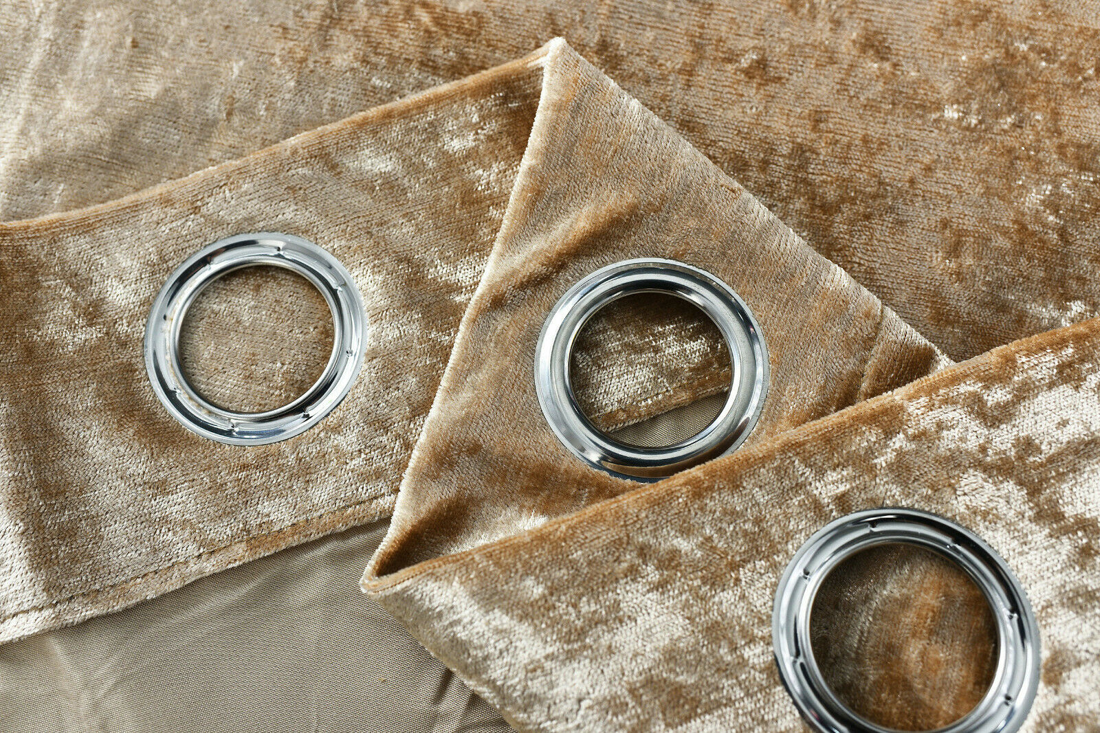 Champagne Gold Crushed Velvet Band Faux Silk Eyelet Curtains