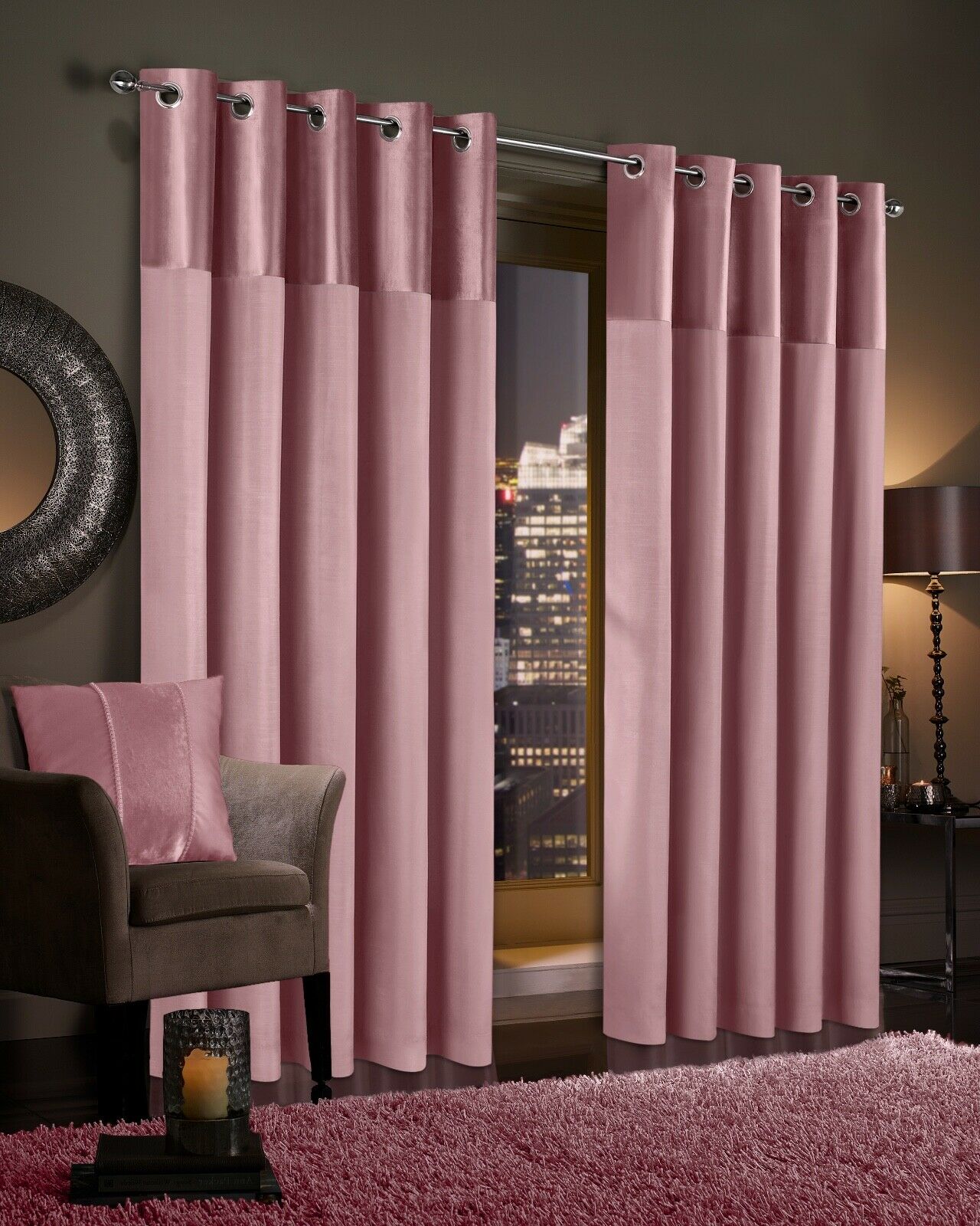 Pair Of Crushed Velvet Band Faux Silk Eyelet Curtains.