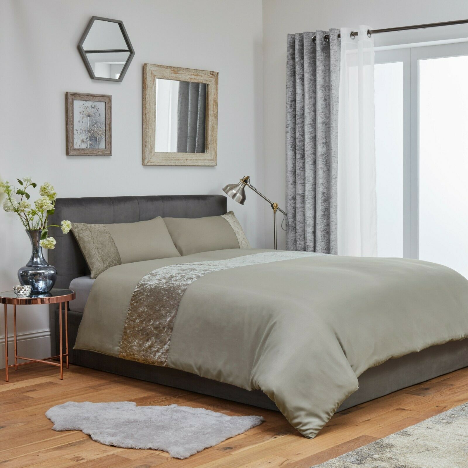 This luxurious crushed velvet panel duvet cover set would look ideal in any bedroom due to its crushed velvet band design and striking colors. This is a perfect way to give your room a fresh, modern look, with its delicate colors. This duvet set is made from soft-touch polyester, making it soft, comfortable, and durable. This easy-care bed linen will give your bedroom an instant sophisticated look and once washed it has great resistance to wrinkles, fading, and shrinkage. It includes a duvet cover and matching pillowcase(s), all you need for a good night’s sleep.